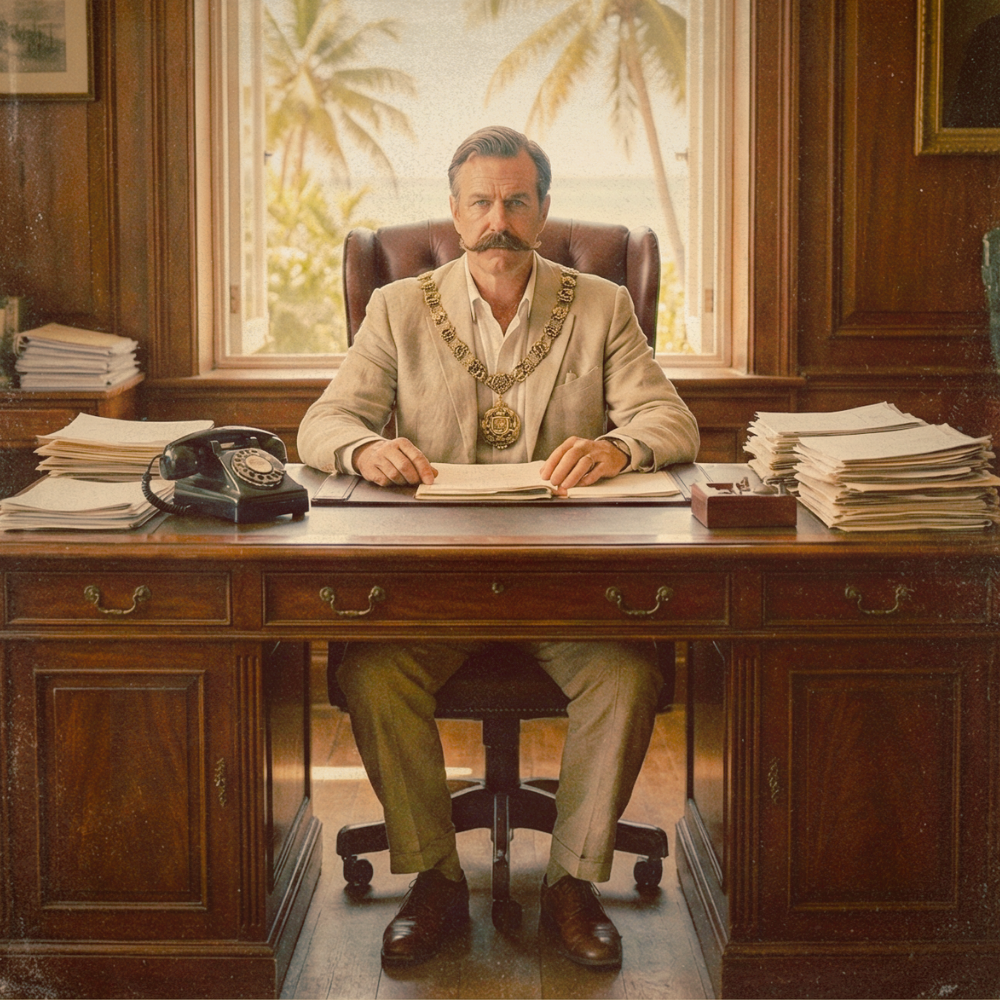 The Lowdown: The self-appointed (and occasionally elected) guardian of island decorum. Sands is a man of spreadsheets and strict decibel limits, tirelessly working to ensure the Bay remains 'jovial' rather than 'raucous'. If a Boardwalk bench wobbles or a palm frond falls out of alignment, he is already drafting the municipal memo.